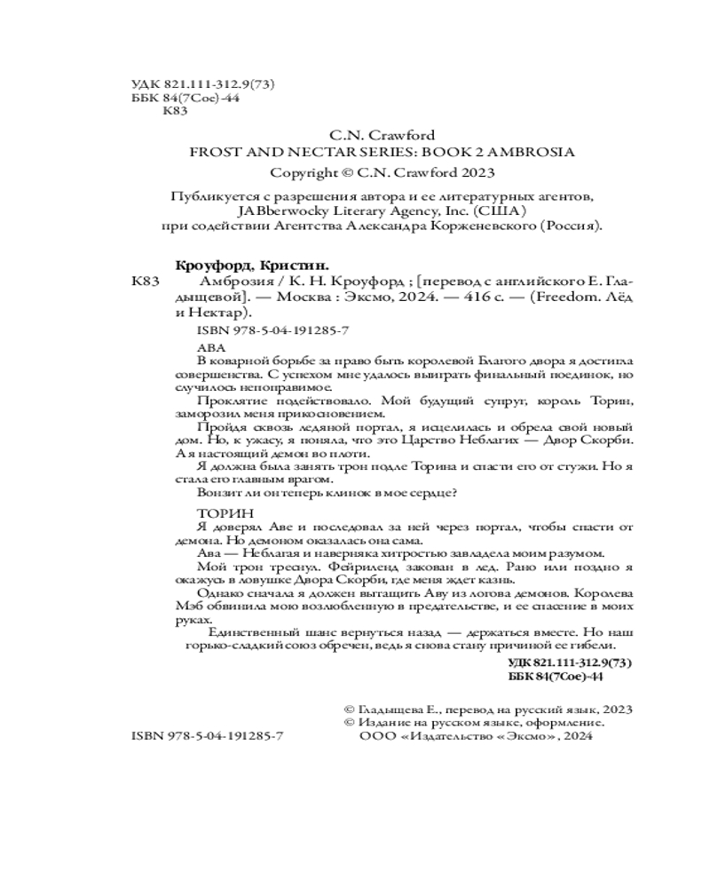 💳 Оплатить за товар можно при получении 🇰🇿 Есть бесплатная доставка по Казахстану от 1 дня 🎁 Копите бонусы с каждой покупки Серия: Freedom. Лёд и Нектар Завершающая часть страстного, пленяющего фэнтези о Короле Благих фейри и девушке, ставшей его музой, — новый цикл романов от К.Н. Кроуфорд! Для фанатов мрачных, но одновременно чарующих историй в духе Холли Блэк, Лекси Райан, Рейвен Кеннеди, и др.! Книга вошла в Топ-10 книг Амазон в жанрах «Фэнтези», «Истории о фейри»! |