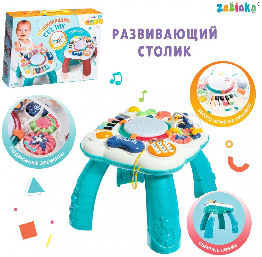 💳 Оплатить за товар можно при получении 🇰🇿 Есть бесплатная доставка по Казахстану от 1 дня 🎁 Копите бонусы с каждой покупки Серия: Моя первая музыкальная игрушка Развивающий столик создан специально для самых маленьких деток. Игрушка привлечёт внимание интересной конструкцией и надолго займёт малыша благодаря множеству полезных функций. Столик не только развлечёт ребёнка — с ним можно осваивать новые навыки! Играя с ним, малыш научится различать цвета и формы, потренирует тактильные навыки, мелкую моторику, усидчивость, слуховое и визуальное восприятие. |