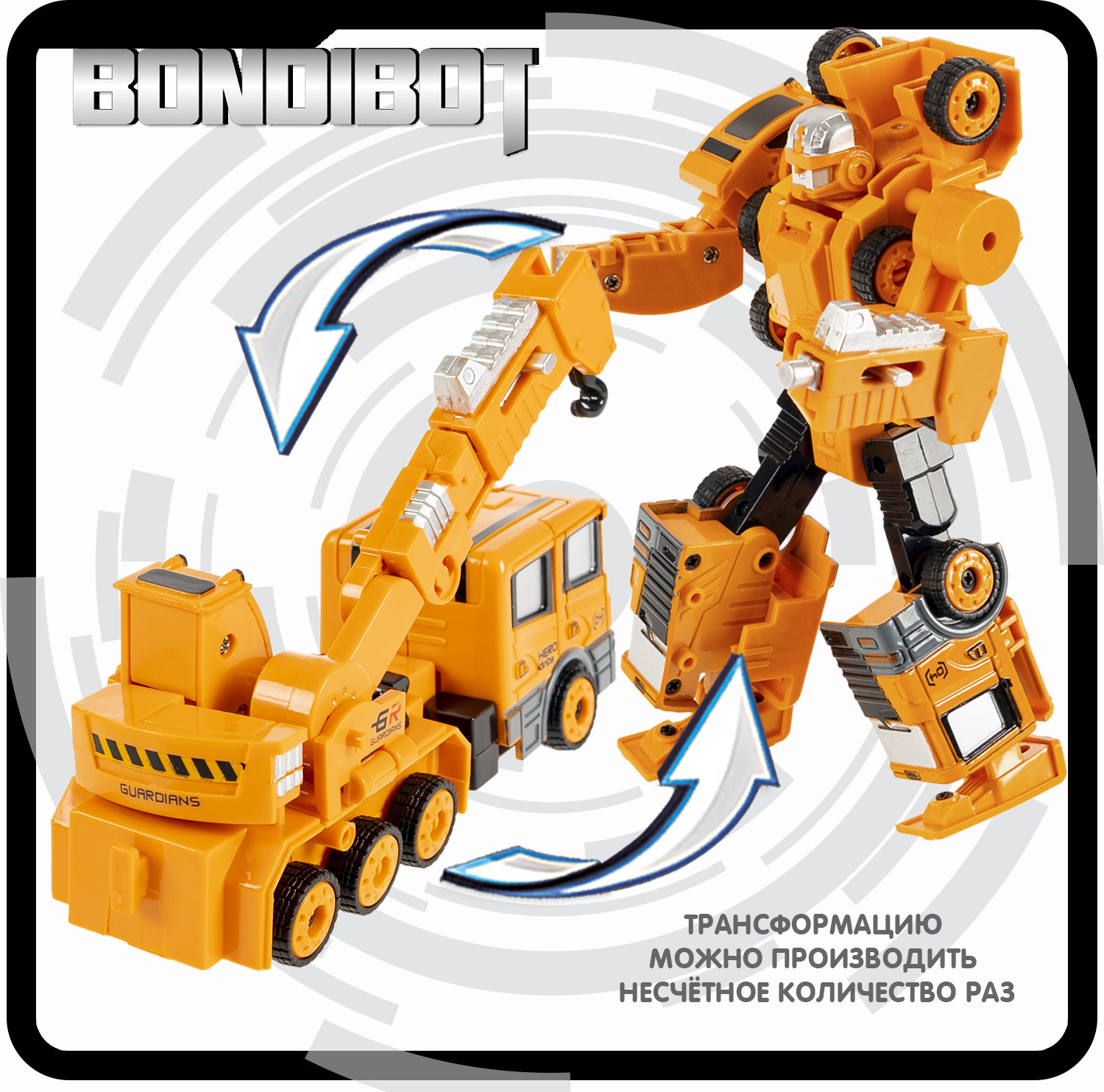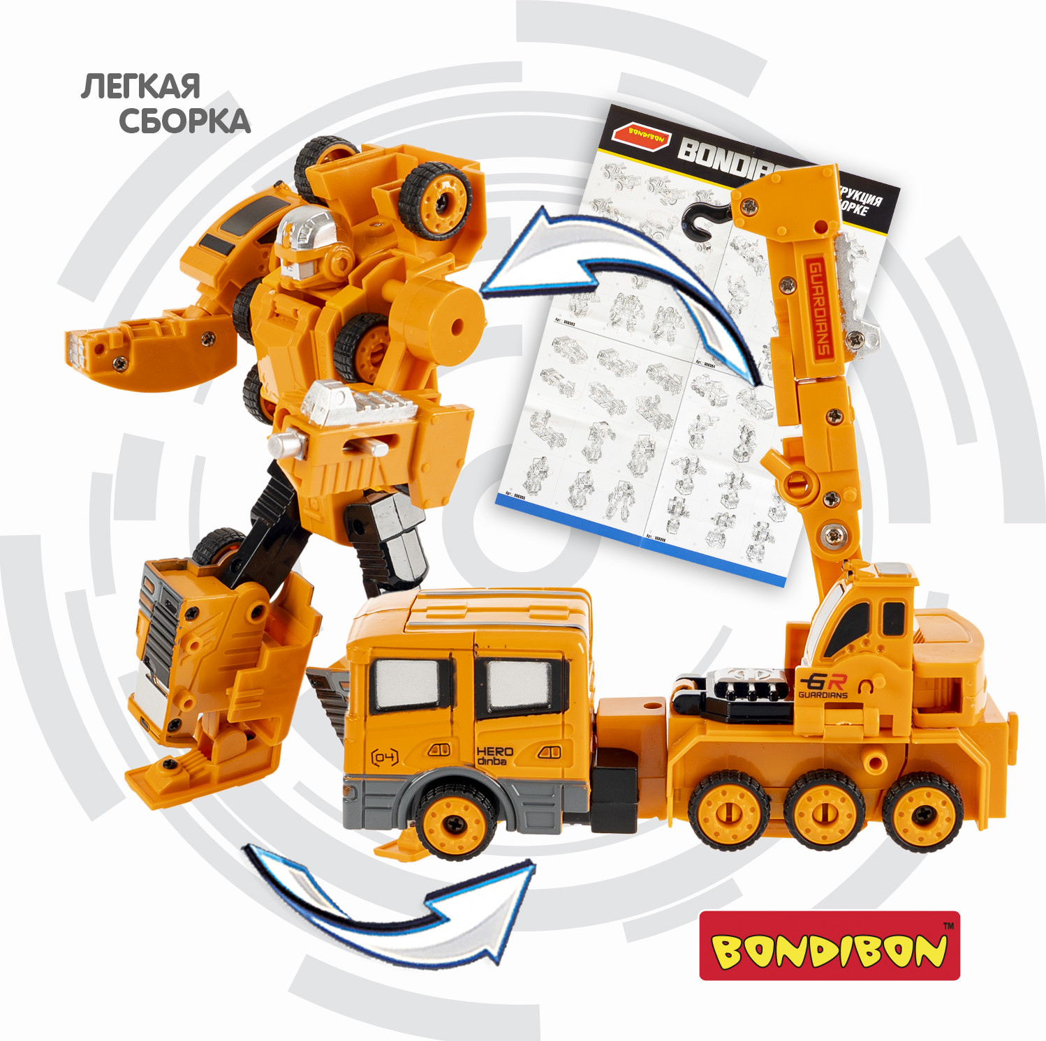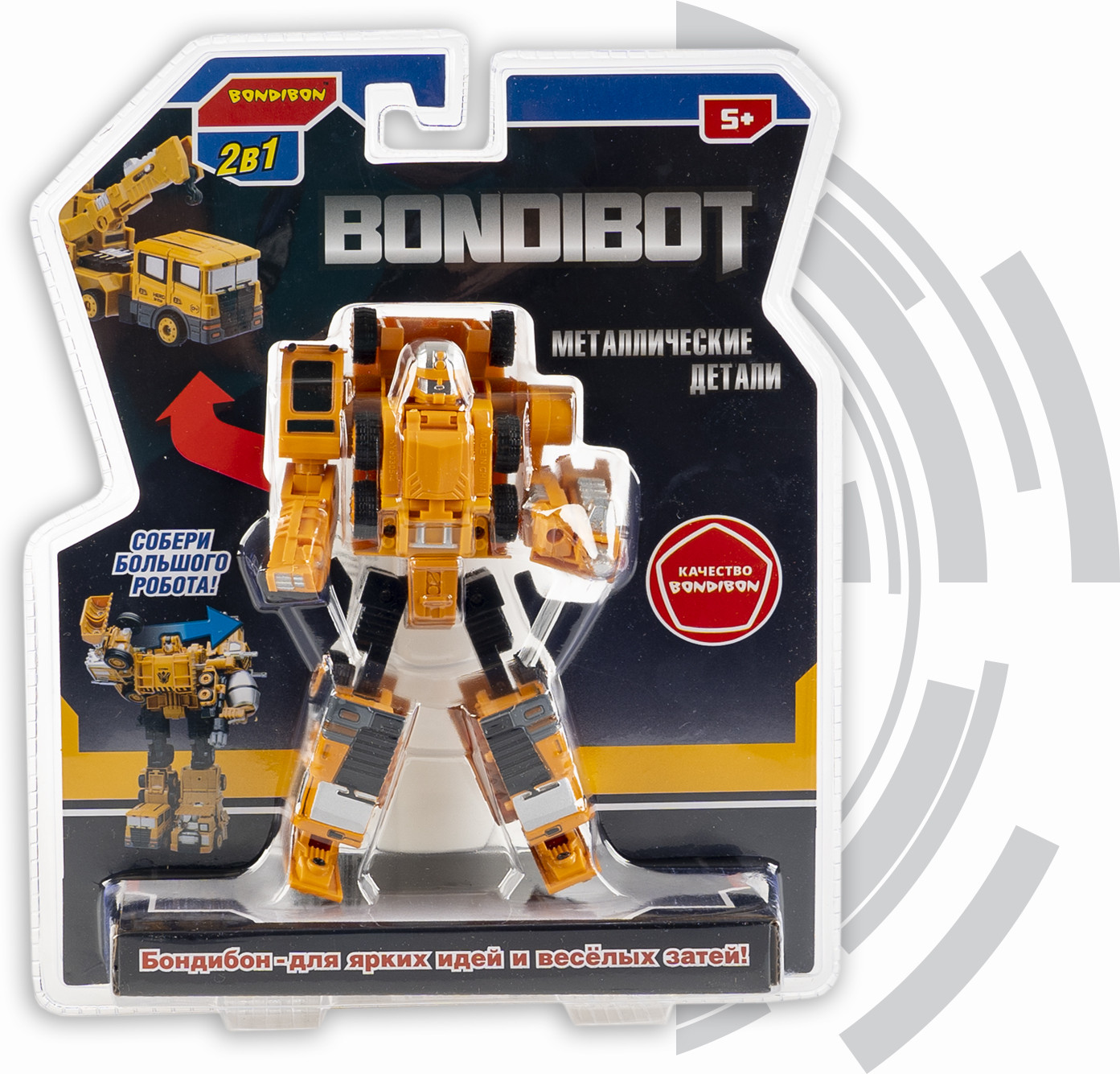 Желтый трансформер «Робот-автокран» 2 в 1 серии Bondibon от Bondibon непременно порадует маленьких любителей строительной техники. Две интересные игрушки в одной с металлическими деталями надолго увлекут ребенка. Соберите всю серию и сделайте большого робота 5 в 1!