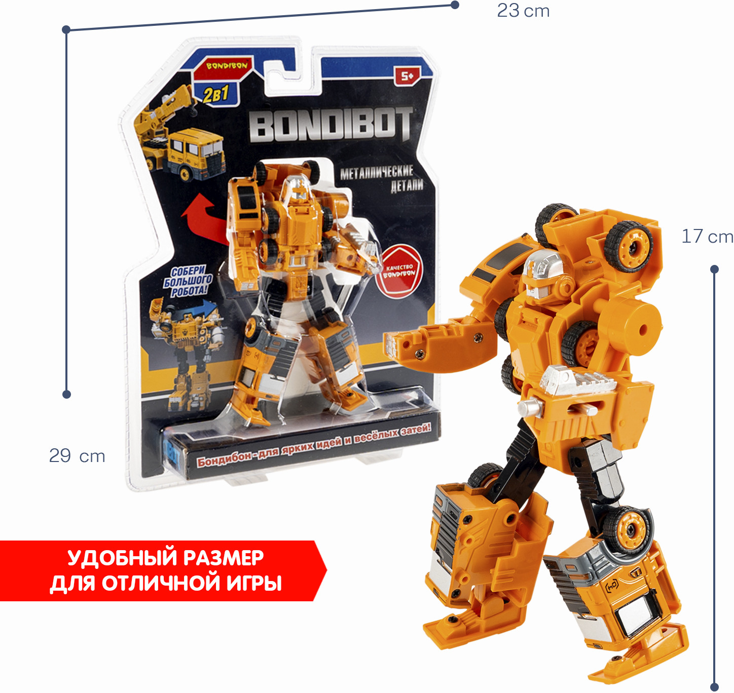 Трансформер «Робот-автокран» 2в1 — замечательный подарок для мальчика. Пополните свою коллекцию пятью моделями с экскаватором, погрузчиком, бетономешалкой, самосвалом, автокраном и соберите большого робота, который вызовет у детей огромный восторг! О качестве и безопасности позаботился Бондибон.