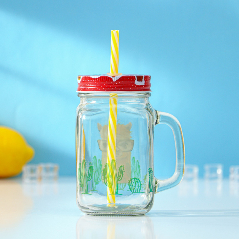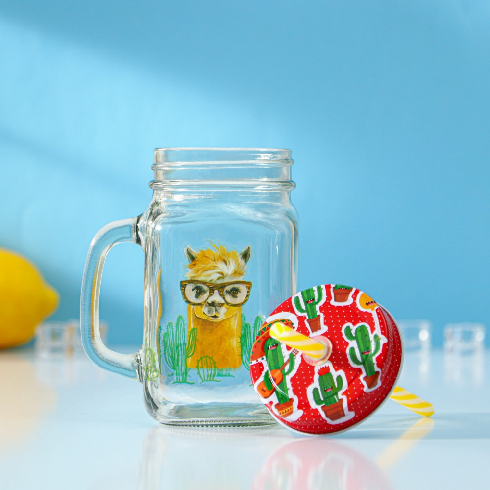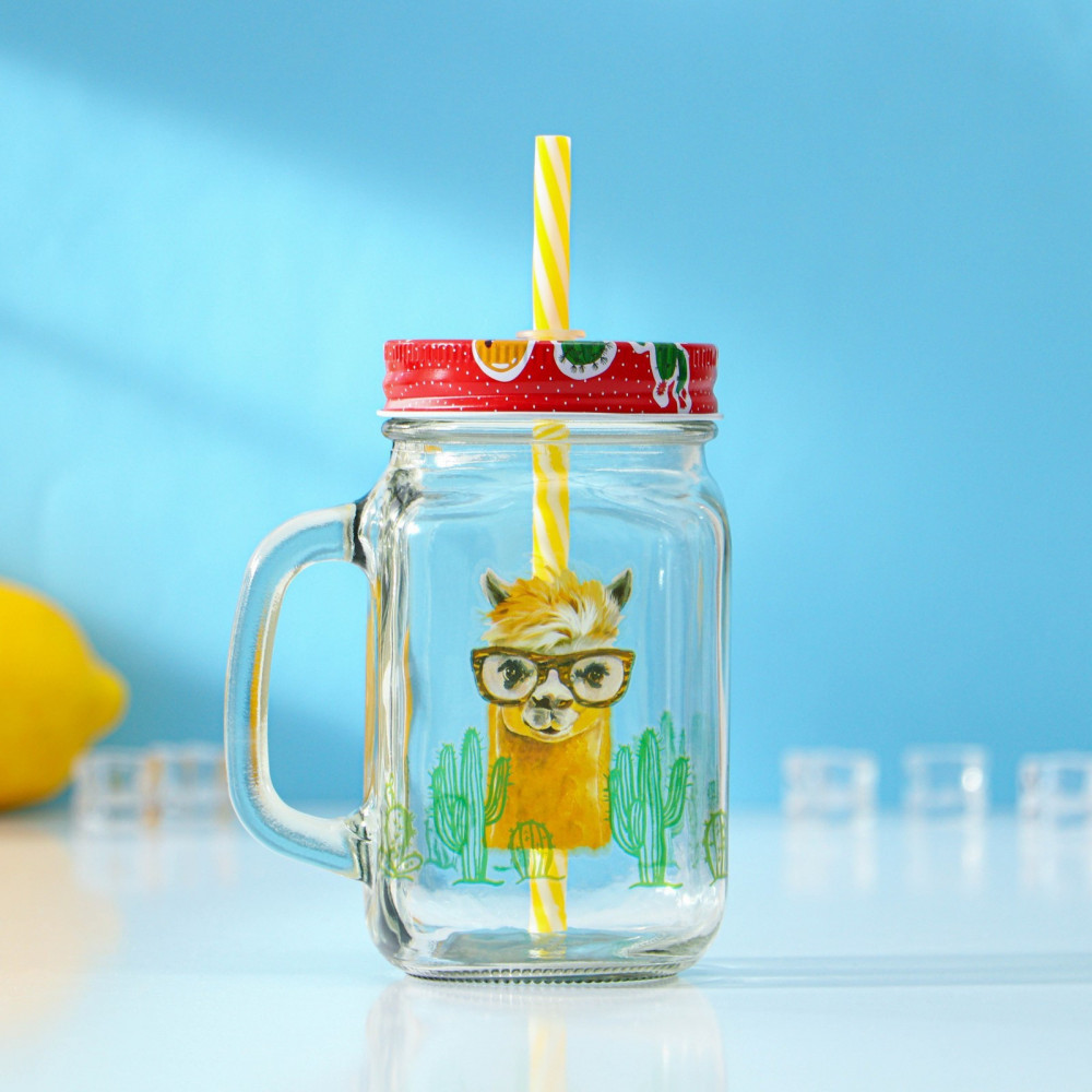 Доляна Кружка с крышкой и трубочкой «Лама»-25% +66