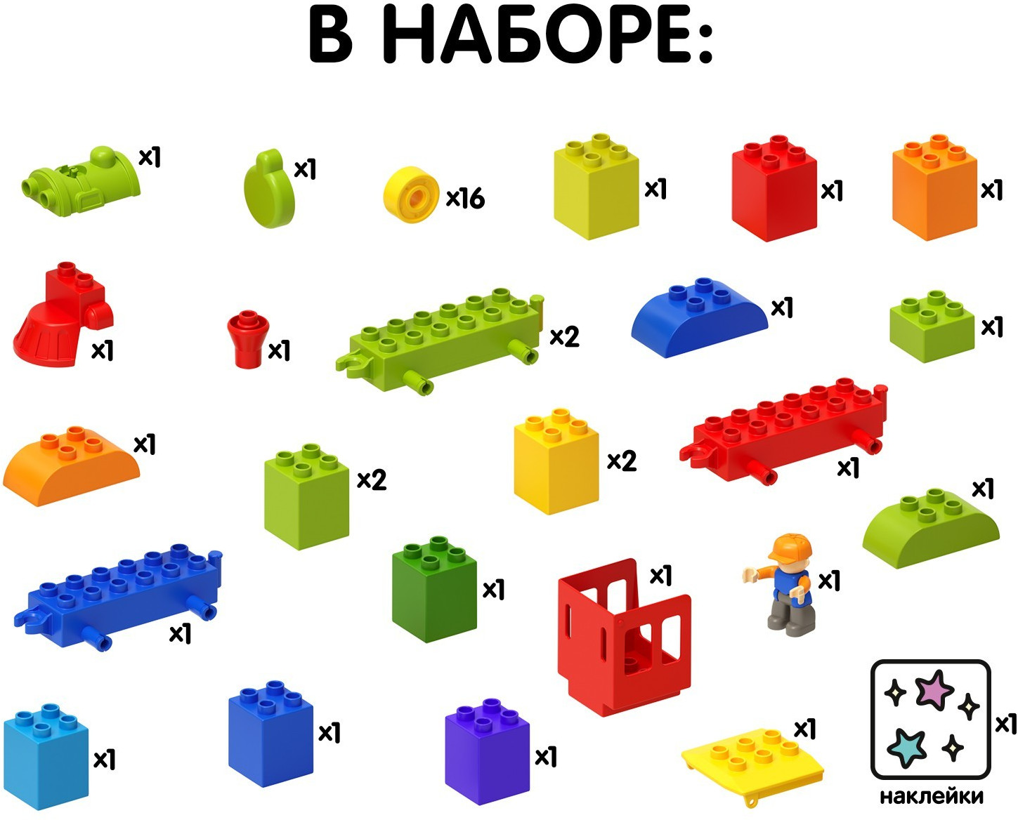 В данный момент этот товар отсутствует в продаже. Возможно, у нас найдется аналогичный или похожий товар здесь. Детский блочный конструктор — это волшебный мир строительства и возможность для развития малыша! Набор из крупных пластиковых деталей поможет потренировать мелкую моторику, воображение и логическое мышление ребёнка. Конструктор «Паровозик» в увлекательной форме научит ребёнка счёту. Малыш сможет собирать детали конструктора в разном порядке, что позволит составлять новые числа. Фигурка в наборе добавит игре динамики и сделает процесс интереснее.