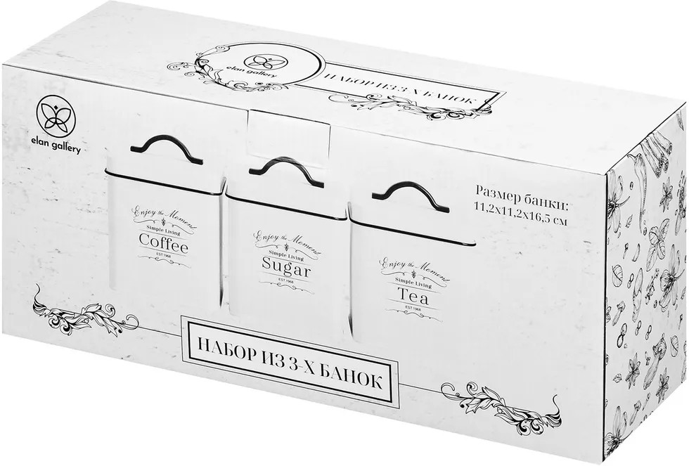 Elan Gallery Набор банок для сыпучих продуктов «Tea, coffee, sugar»