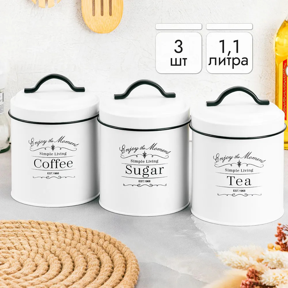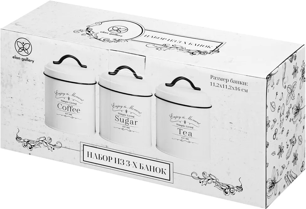 Elan Gallery Набор банок для сыпучих продуктов «Tea, coffee, sugar»