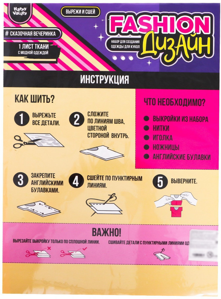 • На упаковке есть пошаговая инструкция по созданию одежды.
