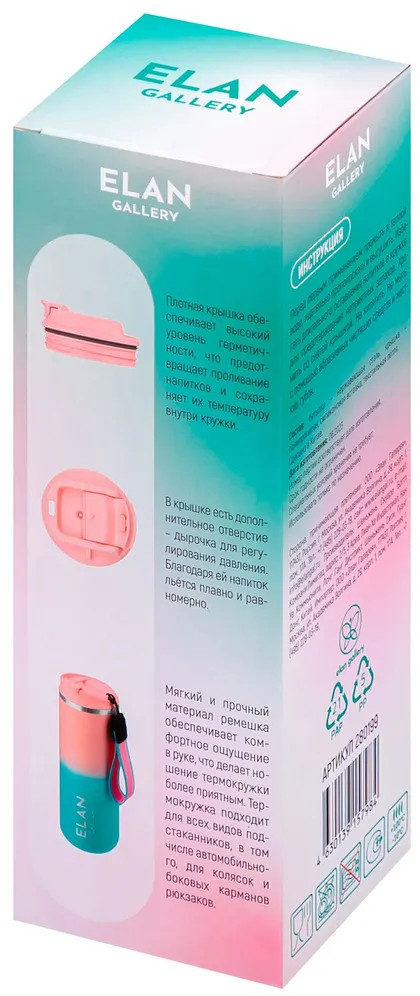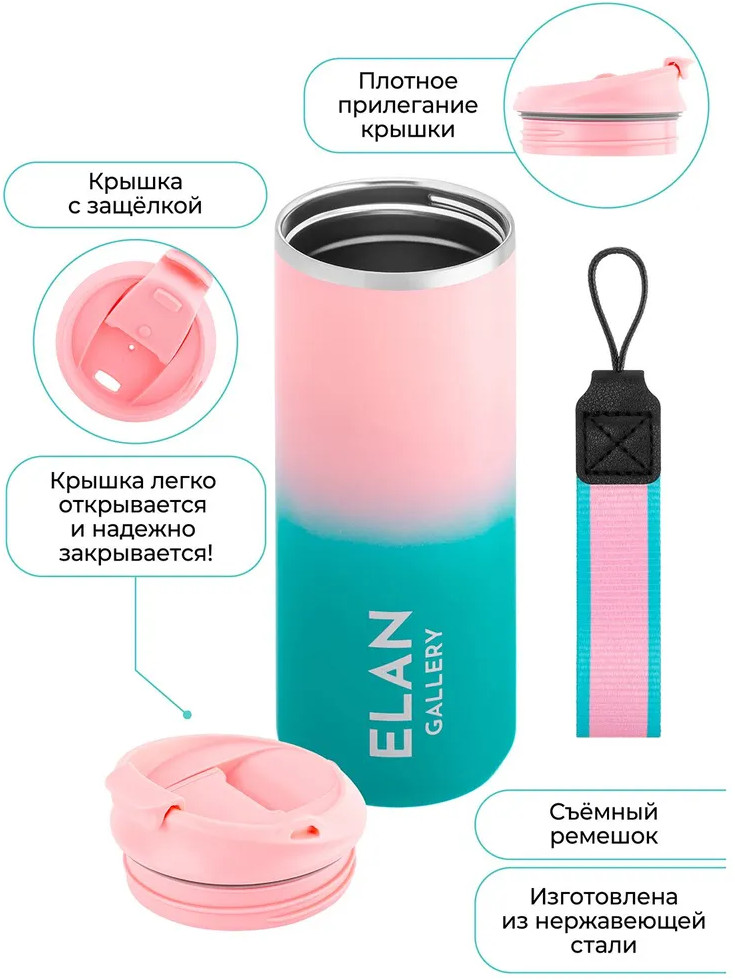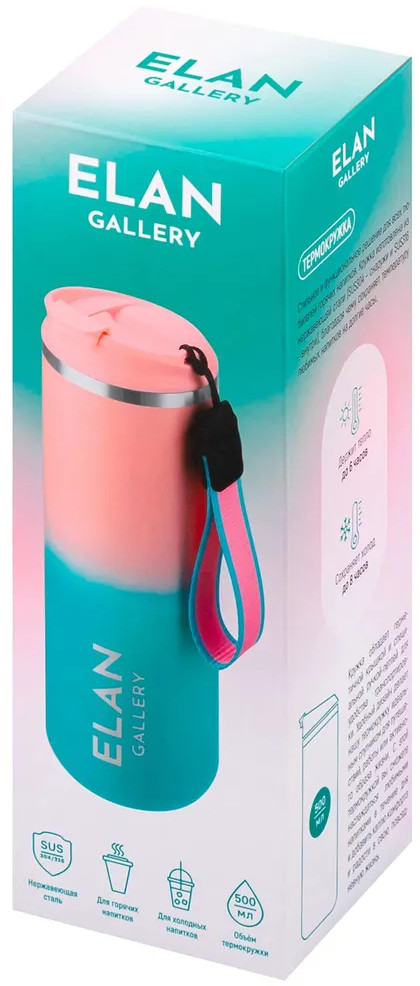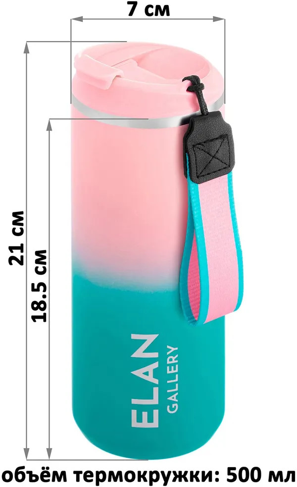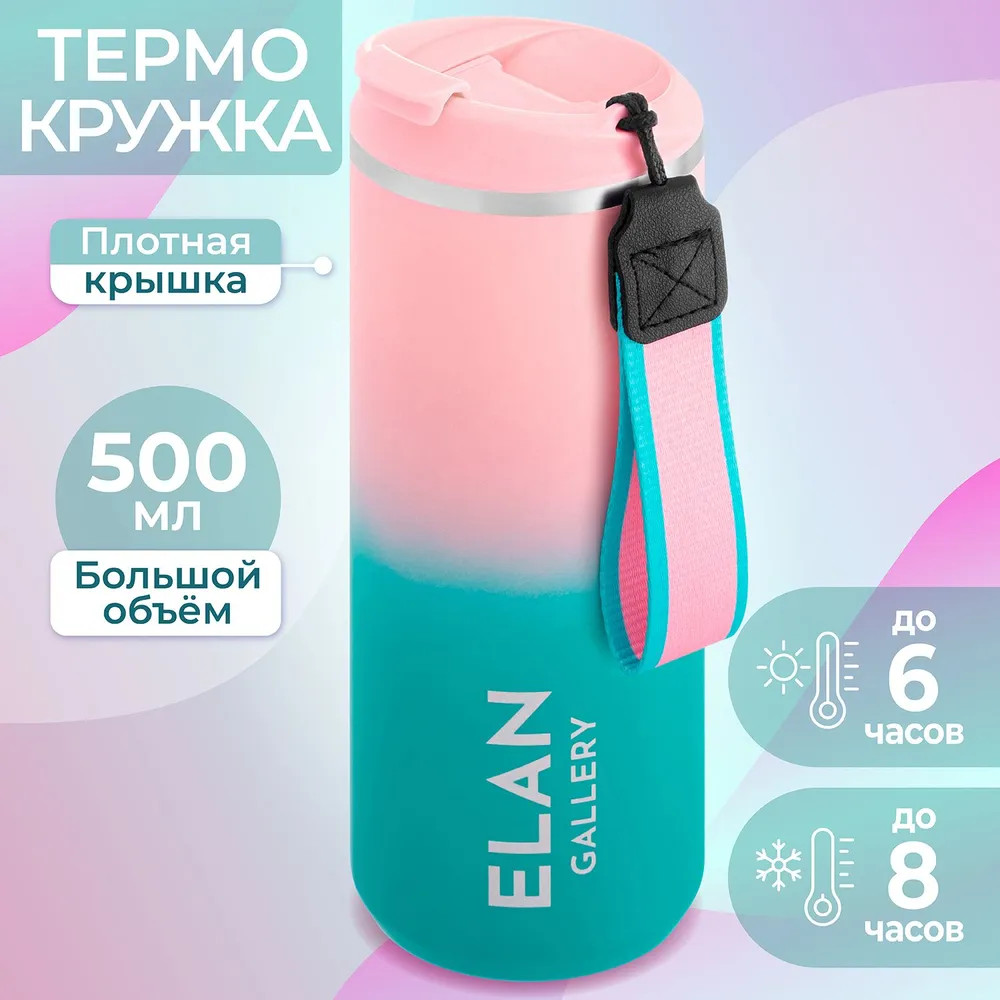 Термокружка Elan Gallery объёмом 500 мл (0,5 литра) — это стильное и функциональное решение для любителей горячих и холодных напитков. Теперь вы можете наслаждаться крепким чаем или ароматным кофе, даже если находитесь не дома. Высота кружки до крышки — 18,5 см. Имеет съёмный ремешок для переноски, что делает её удобной для использования на улице и во время тренировок. Термокружка изготовлена из нержавеющей стали (SUS304 — снаружи, SUS316 — внутри), благодаря чему держит тепло напитка до шести часов, а сохраняет холод — до восьми часов. Кружка обладает закручивающейся крышкой с клапаном из полипропилена. Это термостойкий пищевой материал, в отличие от других видов пластика, обладает высокой прочностью и устойчивостью к химическим воздействиям. Полипропилен не содержит бисфенол А, поэтому полностью безопасен для здоровья. Термопосуду можно использовать как взрослым, так и детям для горячих напитков, питьевой воды и любой другой жидкости. Эргономичный дизайн делает походную термокружку идеальным спутником для путешествий, работы или активного образа жизни. Можно брать с собой в автомобиль, или дать ребёнку в школу. Не рекомендуется применять абразивные моющие средства. Можно мыть в посудомоечной машине. Не использовать в микроволновой печи! Поставляется в стильной картонной упаковке. Термокружка с пластиковой крышкой подойдёт в подарок как женщинам, так и мужчинам на любой праздник. Подарите красивую посуду своим близким на Новый год или День Рождения. С термокружкой вы сможете наслаждаться любимыми напитками в течение дня и добавить комфорта в свою повседневную жизнь!