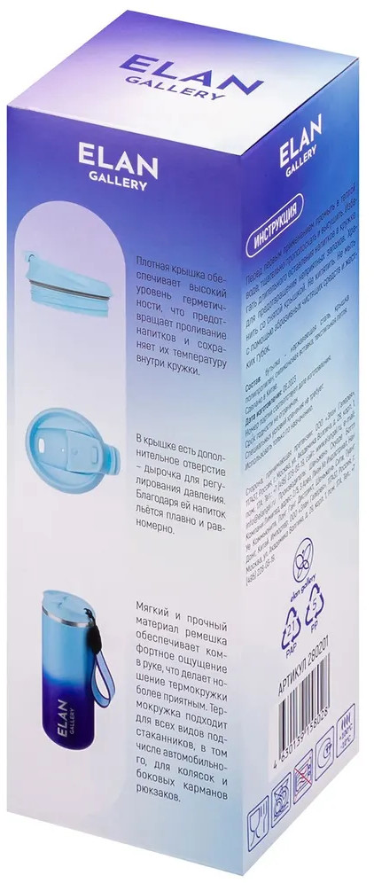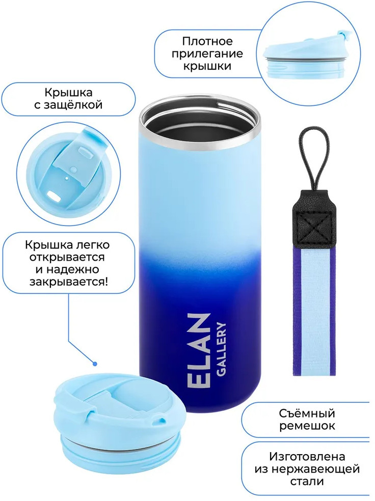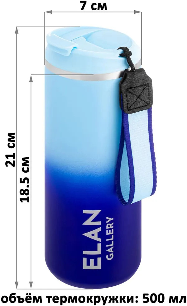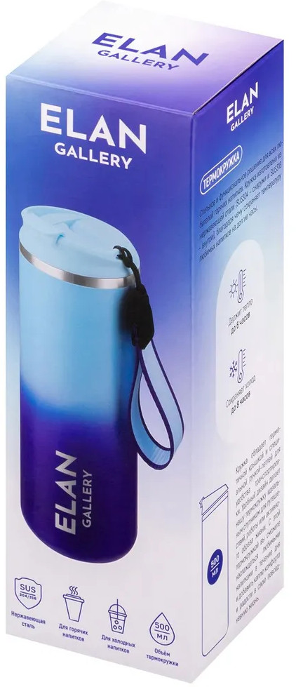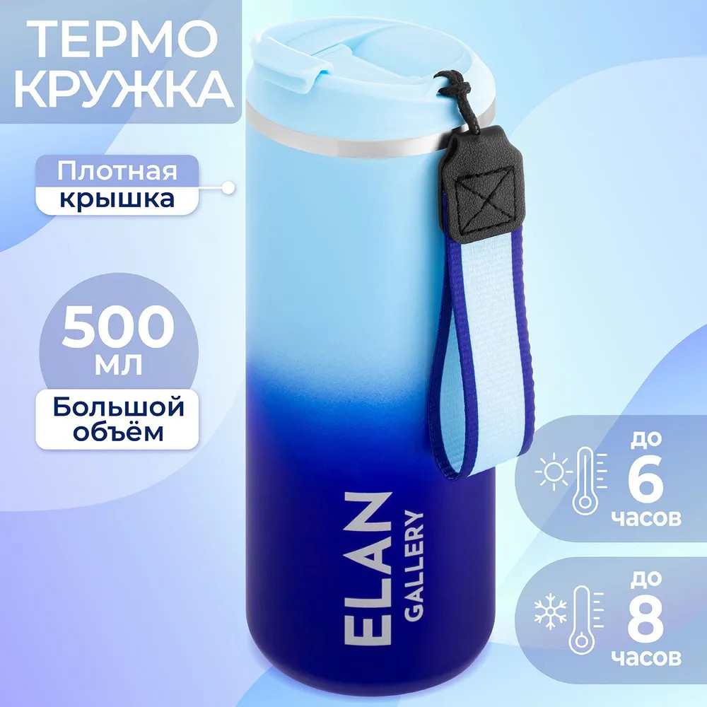 Термокружка Elan Gallery объёмом 500 мл (0,5 литра) — это стильное и функциональное решение для любителей горячих и холодных напитков. Теперь вы можете наслаждаться крепким чаем или ароматным кофе, даже если находитесь не дома. Высота кружки до крышки — 18,5 см. Имеет съёмный ремешок для переноски, что делает её удобной для использования на улице и во время тренировок. Термокружка изготовлена из нержавеющей стали (SUS304 — снаружи, SUS316 — внутри), благодаря чему держит тепло напитка до шести часов, а сохраняет холод — до восьми часов. Кружка обладает закручивающейся крышкой с клапаном из полипропилена. Это термостойкий пищевой материал, в отличие от других видов пластика, обладает высокой прочностью и устойчивостью к химическим воздействиям. Полипропилен не содержит бисфенол А, поэтому полностью безопасен для здоровья. Термопосуду можно использовать как взрослым, так и детям для горячих напитков, питьевой воды и любой другой жидкости. Эргономичный дизайн делает походную термокружку идеальным спутником для путешествий, работы или активного образа жизни. Можно брать с собой в автомобиль, или дать ребёнку в школу. Не рекомендуется применять абразивные моющие средства. Можно мыть в посудомоечной машине. Не использовать в микроволновой печи! Поставляется в стильной картонной упаковке. Термокружка с пластиковой крышкой подойдёт в подарок как женщинам, так и мужчинам на любой праздник. Подарите красивую посуду своим близким на Новый год или День Рождения. С термокружкой вы сможете наслаждаться любимыми напитками в течение дня и добавить комфорта в свою повседневную жизнь!