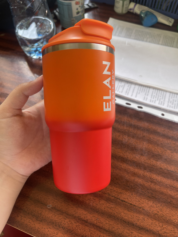 Идеальная кружка. Яркий насыщенный оттенок сразу привлекает внимание. Комфортно сидит в руке, можно носить за шнурок. Отлично держит температуру долгое время. Стакан снаружи нормальной температуры, спокойно можно носить в руке.