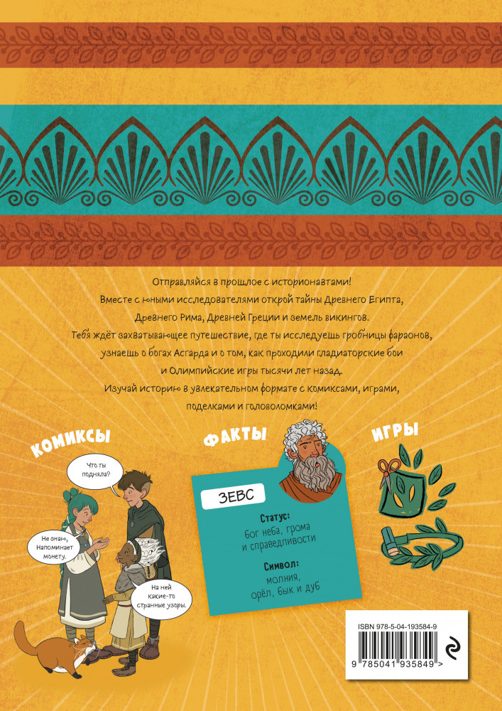 💳 Оплатить за товар можно при получении 🇰🇿 Есть бесплатная доставка по Казахстану от 1 дня 🎁 Копите бонусы с каждой покупки Серия: Историонавты Присоединяйтесь к историонавтам в большом путешествии в прошлое! Вместе с юными исследователями тебе предстоит открыть тайны Древнего Египта, Древнего Рима, Древней Греции и земель викингов. Тебя ждёт захватывающие путешествие, в котором ты исследуешь гробницы фараонов, научишься расшифровывать иероглифы, поучаствуешь в налёте викингов, узнаешь о богах Асгарда и о том, как проходили гладиаторские бои и Олимпийские игры тысячи лет назад. Изучай историю в увлекательном формате с комиксами, играми, поделками и головоломками! |