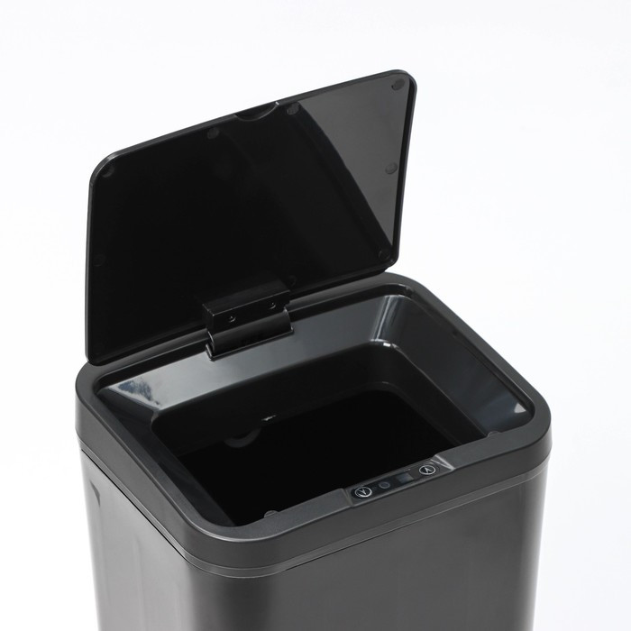 • сенсорный датчик обеспечивает автоматическое открытие крышки при приближении пользователя на расстояние до 15 см. Крышка плотно закрывается через 5 секунд после удаления отходов, предотвращая распространение неприятных запахов и загрязнение воздуха;
