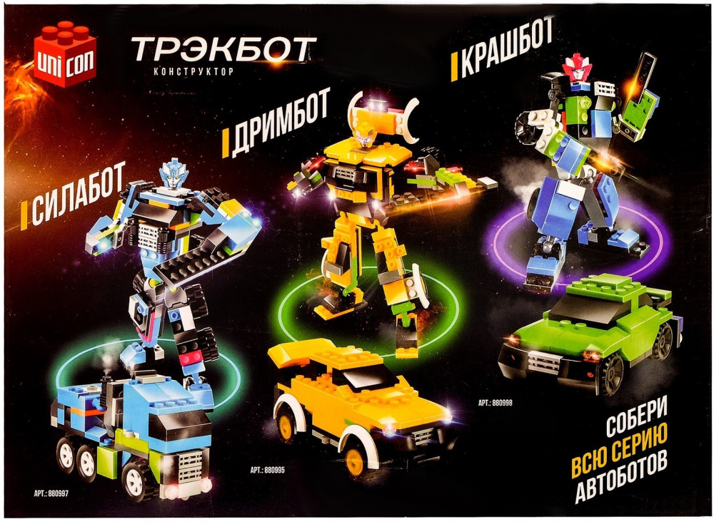 Unicon Конструктор-трансформер «Спорткар»В данный момент этот товар отсутствует в продаже. Возможно, у нас найдется аналогичный или похожий товар здесь. Серия: Робот Соберите неуловимый спорткар и отправляйтесь покорять скоростные трассы. Завоюйте звание чемпиона, а когда победа будет за вами, превратите болид в неуязвимого робота. С таким героем мальчишка придумает множество увлекательных сюжетов. Игры с конструкторами разовьют у малыша изобретательность, мелкую моторику, внимательность, воображение, логическое и образное мышление. |