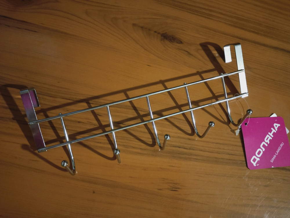 Вешалка неплохая ,компактная .В реальности нет такой четкости линий ,как на фото.Моя ,слегка выгнута в сторону крючков .Но в общем неплохая.На дверку кухонного шкафа ,встала хорошо.Цена лояльная .