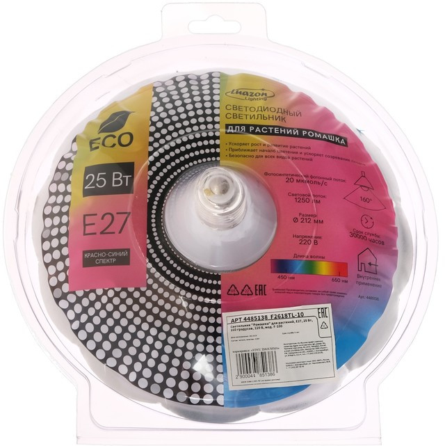 Luazon Lighting Фитосветильник мультиспектральный «Ромашка»В данный момент этот товар отсутствует в продаже. Возможно, у нас найдется аналогичный или похожий товар здесь. Для целостного развития растениям нужен солнечный свет. Это просто на словах, но на практике в наших широтах световой день короткий и естественного освещения не хватает. Фитолампы решают проблему дефицита света. Весной, летом, осенью и даже зимой. Угол рассеивания 120°, фотосинтетический поток фотонов 20 мкмоль/с. |