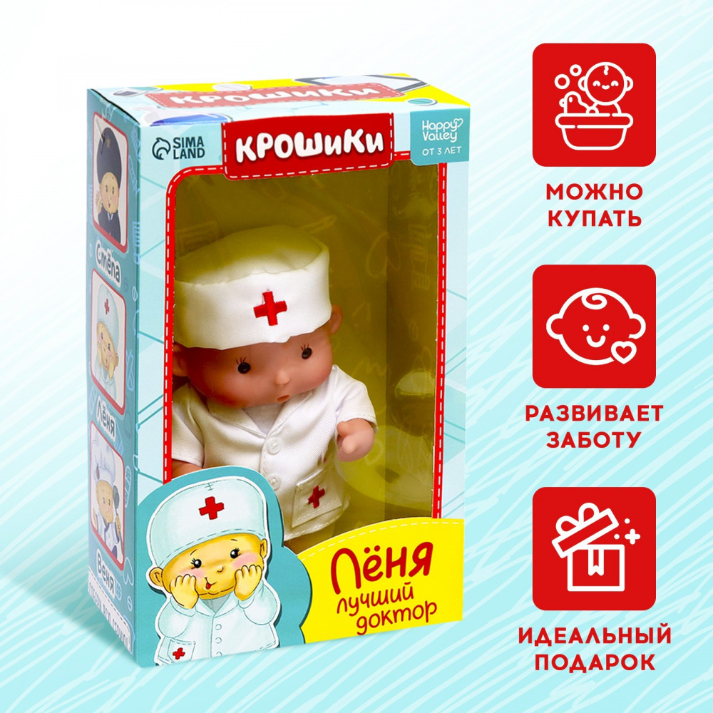 Happy Valley Пупс «Лёня: лучший доктор»В данный момент этот товар отсутствует в продаже. Возможно, у нас найдется аналогичный или похожий товар здесь. Серия: Крошики пупсы Знакомьтесь, это Лёня! Самый настоящий доктор, который очень любит всех лечить. С ним ребёнок придумает множество игровых сюжетов и познакомится с профессией врача. |