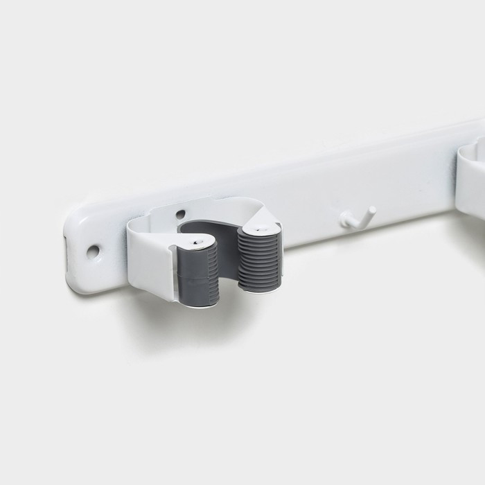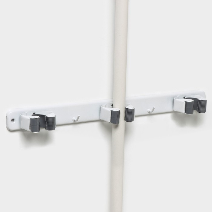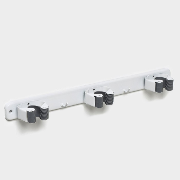 Удобный и практичный аксессуар, который поможет навести порядок в вашей ванной комнате, прихожей или туалете — держатель швабр, щёток и других бытовых изделий.