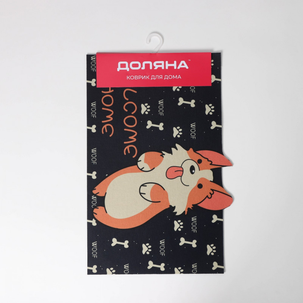 Доляна Коврик влаговпитывающий придверный «Корги»-25% +87 мягкость материала хорошая впитываемость приятный дизайн легко чистится