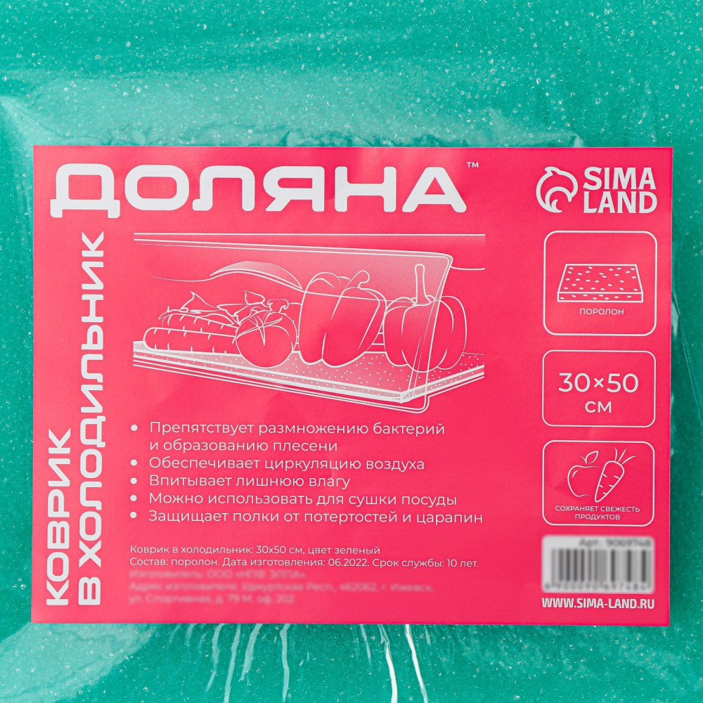 Коврик используется для хранения овощей и фруктов. Он обеспечит свежесть продуктов в течение длительного времени благодаря циркуляции воздуха между ними и поверхностями холодильника. Изготовлен из поролона, за ним легко ухаживать, можно мыть под тёплой водой с использованием жидких моющих средств.