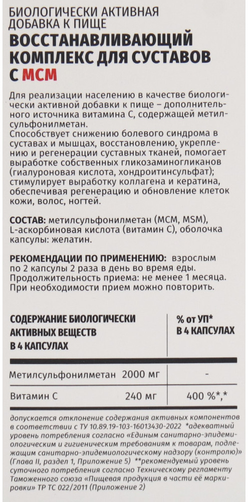 Отзывы «БАД для суставов восстанавливающий «МСМ»»