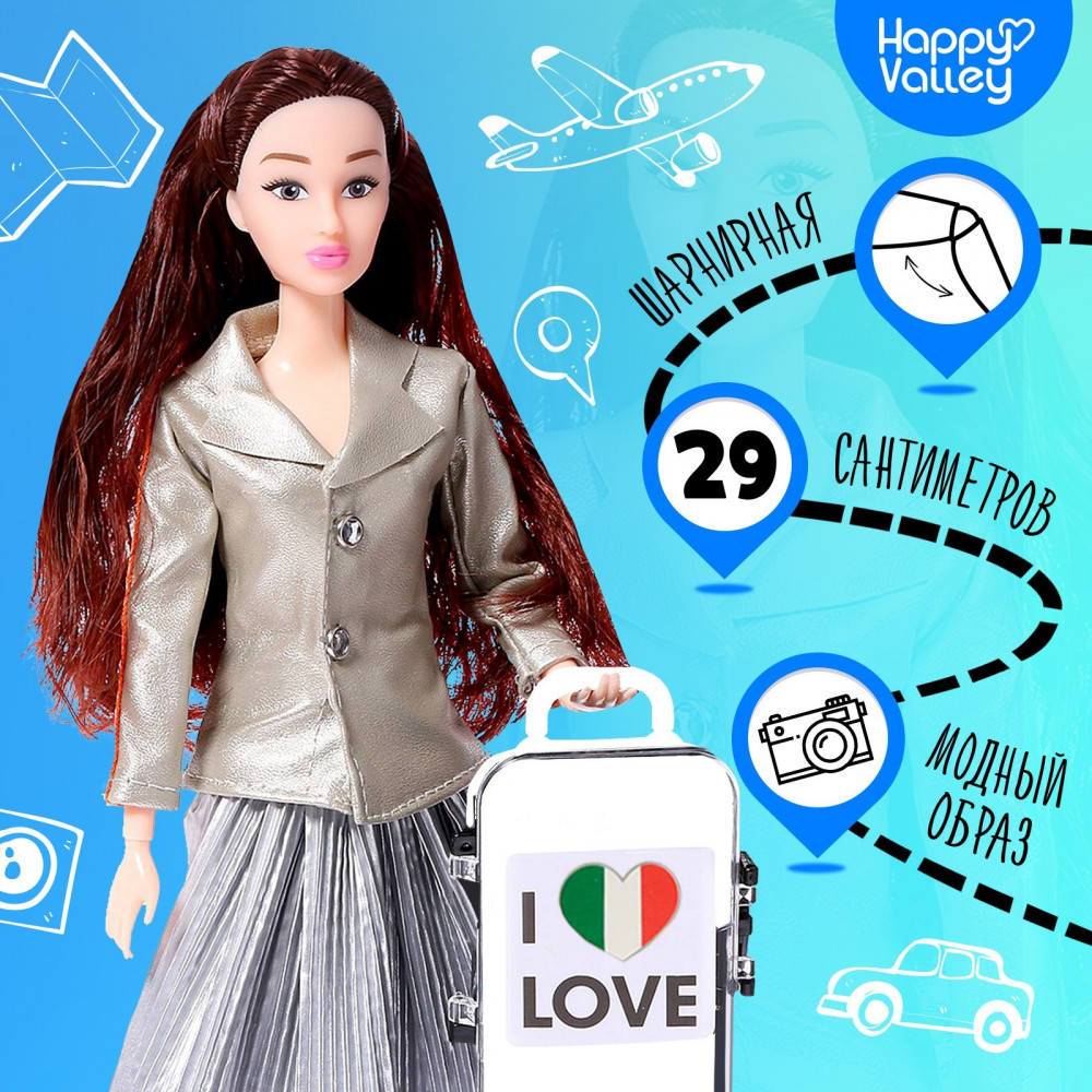 Happy Valley Кукла шарнирная с аксессуарами «Барбара в Милане»В данный момент этот товар отсутствует в продаже. Возможно, у нас найдется аналогичный или похожий товар здесь. Серия: Кукла модельная Эта кукла станет верной подружкой для девочки. Шарнирная игрушка способна принять почти любую естественную позу. А на её длинных волосах ребёнок будет делать модные причёски. Рост куколки: 29 см, размер чемодана: 5,5 × 4 × 8 см. |