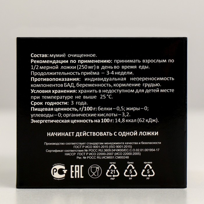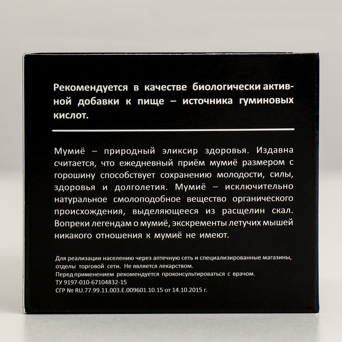 Сашера-Мед Мумиё алтайское «Горная благодать»В данный момент этот товар отсутствует в продаже. Возможно, у нас найдется аналогичный или похожий товар здесь. Мумиё – природный эликсир здоровья. Издавна считается, что ежедневный приём мумиё размером с горошину способствует сохранению молодости, силы, здоровья и долголетия. Мумиё – исключительно натуральное смолоподобное вещество органического происхождения, выделяющееся из расщелин скал. Вопреки легендам о мумиё, экскременты летучих мышей никакого отношения к мумиё не имеют. |