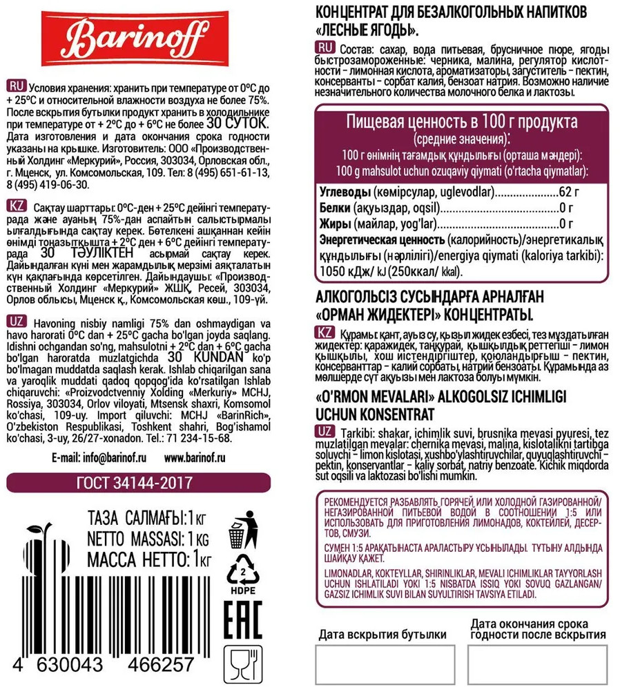 Отзывы «Концентрат для напитков «Лесные ягоды»»
