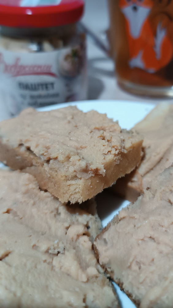 Паштет вкусный, мало соленый, нежный, довольно густой, хорошо намазывается на тосты. Для меня важно, что в паштет не добавлено большого количества специй и сахар.