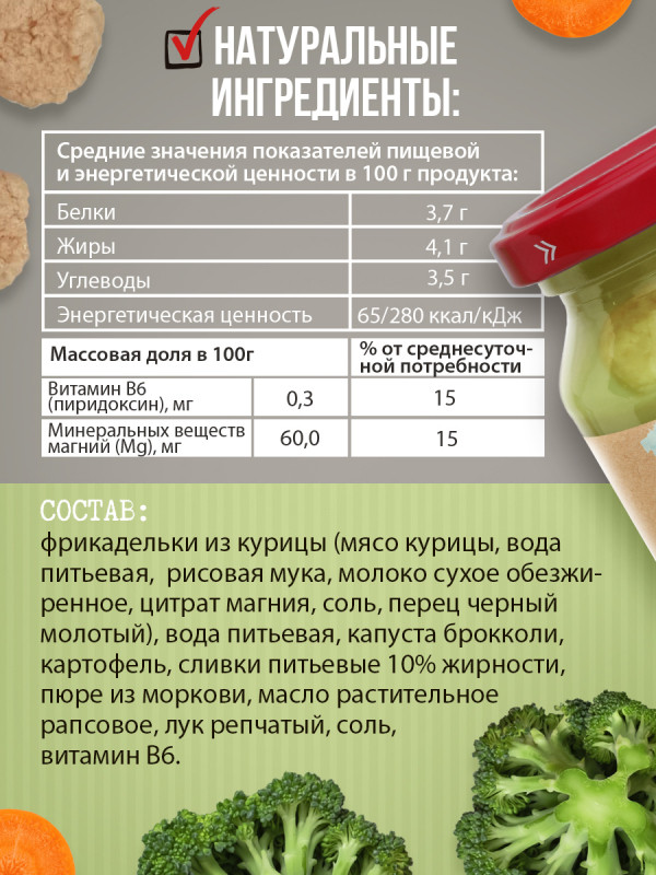 Воскресение Суп-пюре с фрикадельками из курицы и брокколиВ данный момент этот товар отсутствует в продаже. Возможно, у нас найдется аналогичный или похожий товар здесь. Представляем Вашему вниманию новую уникальную линейку продукции правильного питания под брендом «Воскресение». Это готовое решение обеда или ужина для тех, кто заботится о своём здоровье. В составе содержатся только натуральные ингредиенты и витамины, нет красителей и консервантов. |
