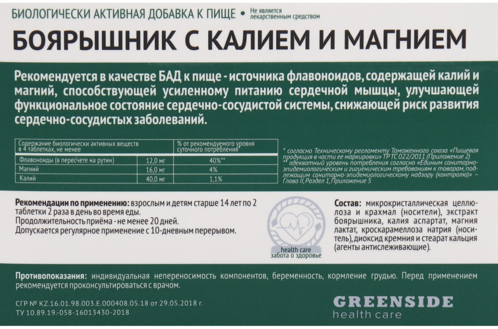 | Грин Сайд Витамины с калием и магнием « Боярышник»+28 (бонусов)