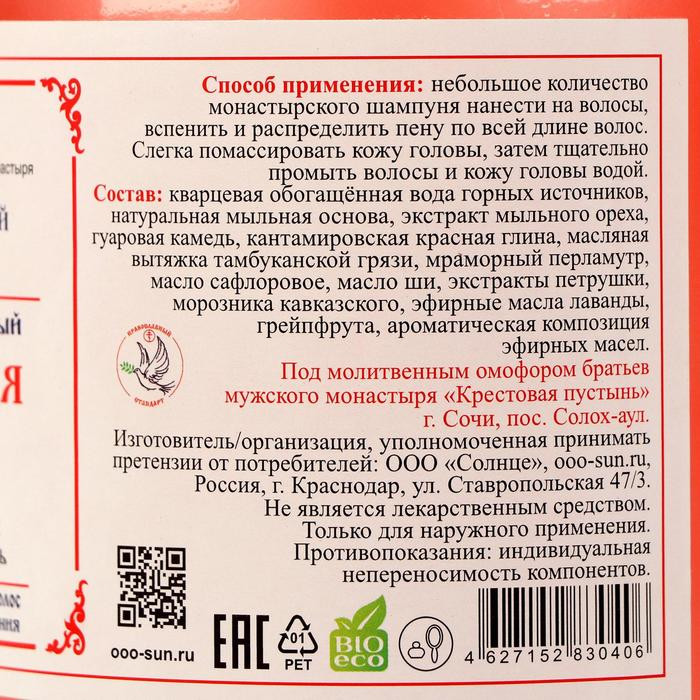 Бизорюк Шампунь для волос монастырский бессульфатный «Красная глина»