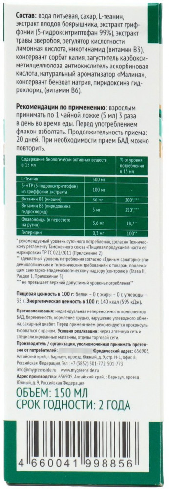 Грин Сайд БАД 5-НТР+Теанин и витамины группы В-25% +100