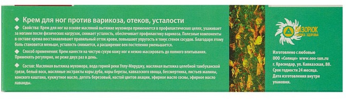 Бизорюк Крем для ног против варикоза