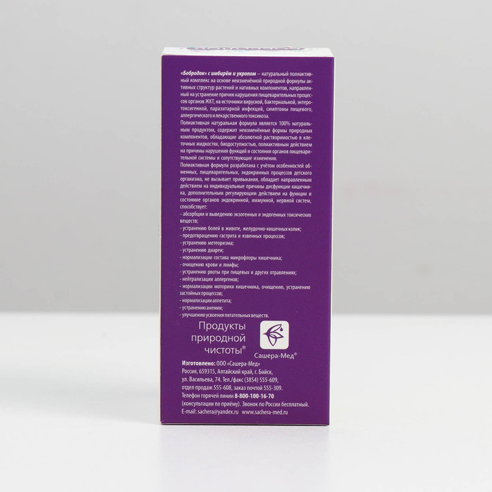 Сашера-Мед Сироп «Бобродок»В данный момент этот товар отсутствует в продаже. Возможно, у нас найдется аналогичный или похожий товар здесь. Бобродок с имбирем и укропом – натуральный полиактивный комплекс на основе неизменённой природной формулы активных структур растений и нативных компонентов, направленный на устранение причин нарушения пищеварительных процессов органов ЖКТ, на источники вирусной, бактериальной, энтеротоксигенной, паразитарной инфекций, симптомы пищевого, аллергического и лекарственного токсикоза. |