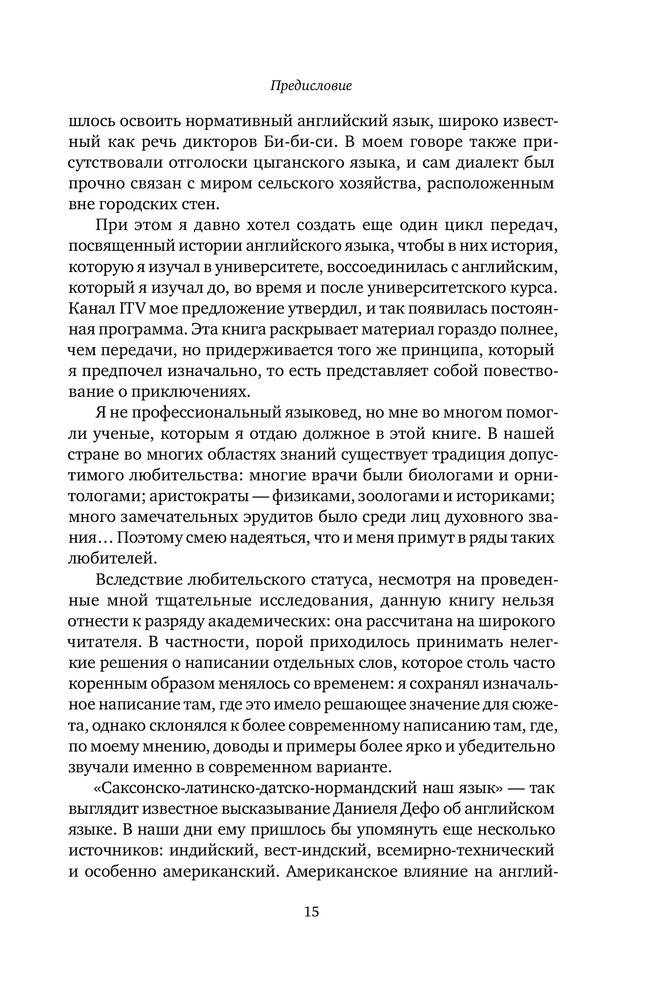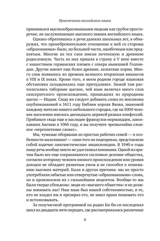 Интересная книга, создана на основе серии передач BBC. Описывает формирование английского языка (и его диалектов) с момента переселения англосаксов в Британию. Полагаю книга будет интересна всем кто интересуется английским языком.