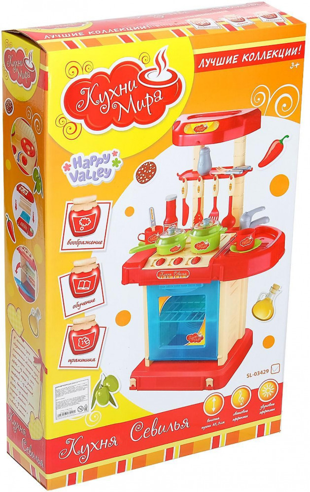 Happy Valley Модуль игровой с аксессуарами «Кухня. Севилья»В данный момент этот товар отсутствует в продаже. Возможно, у нас найдется аналогичный или похожий товар здесь. Серия: Детская кухня Маленькие хозяйки всегда готовы помочь своей маме, поэтому будут в восторге от яркой и функциональной кухни. В каждый набор входят аксессуары, такие, как ложки, чашки, ножи (изготовлены из безопасного пластика), что придает игре реалистичность. Кухня имеет звуковые и световые эффекты. |