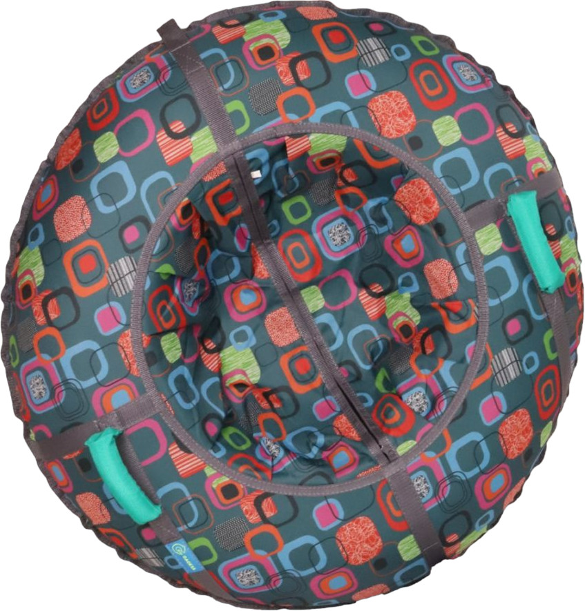 Низ тюбинга изготовлен из высокопрочного двустороннего ПВХ, плотностью 650 г/м куб., отличается надежностью и износостойкостью, а так же прекрасно скользит. Верх — ткань Oxford, плотностью 600 г/м куб., с различными красочными расцветками для девочек и мальчиков — не промокает, не скользит, устойчив к морозам.