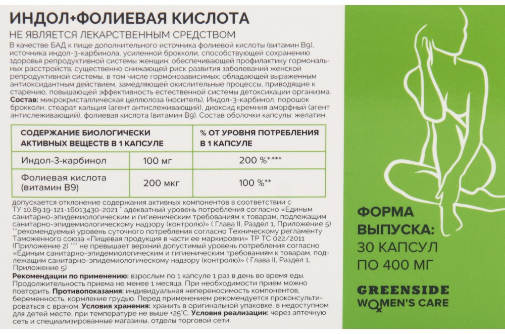 Грин Сайд Кислота фолиевая «Индол» для сохранения здоровья репродуктивной системы женщин-25% +110