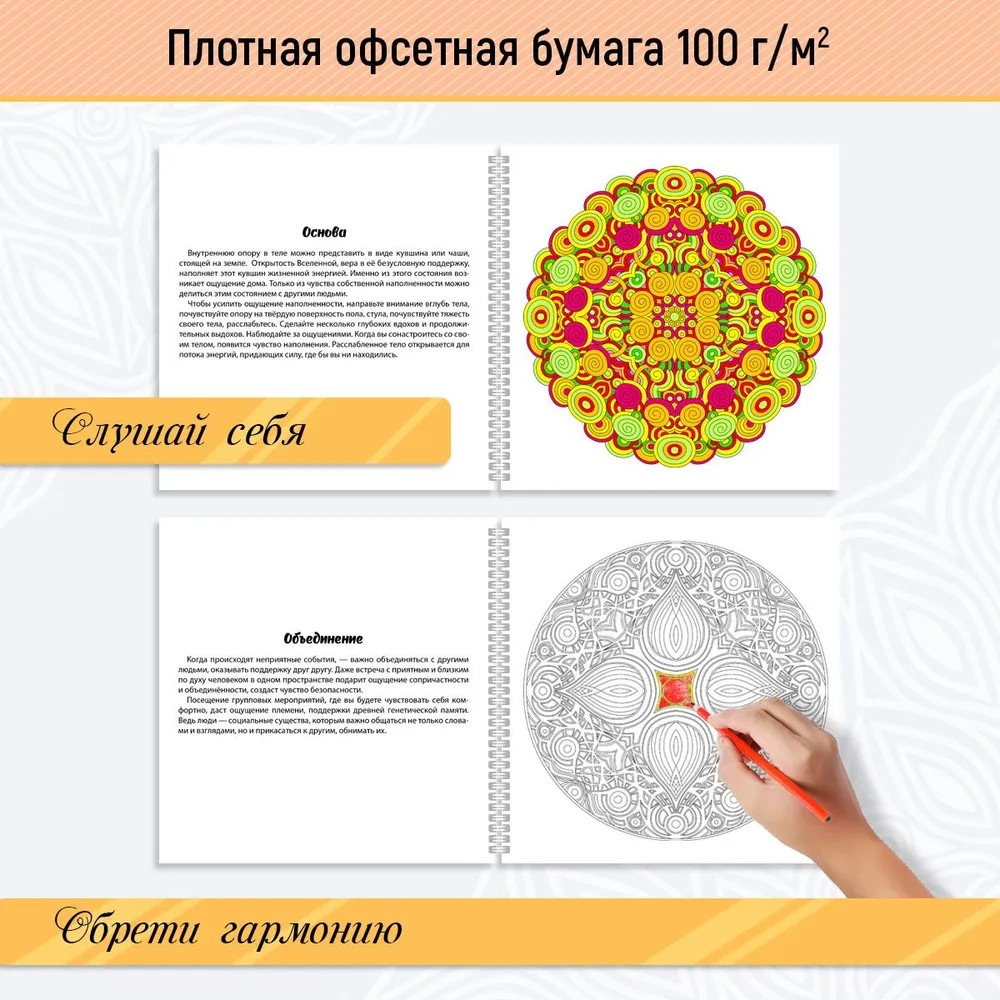 Мандалы против выгорания. Раскраска-антистресс+45 красивые иллюстрации на пружине плотные листы под фломастеры залипательные узоры