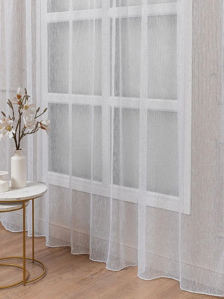 Рекомендации по уходу: машинная стирка на деликатном режиме при 30 градусах с использованием жидкого моющего средства без отбеливающих компонентов, отжим на деликатном режиме. Изделие на шторной ленте и готово к использованию.