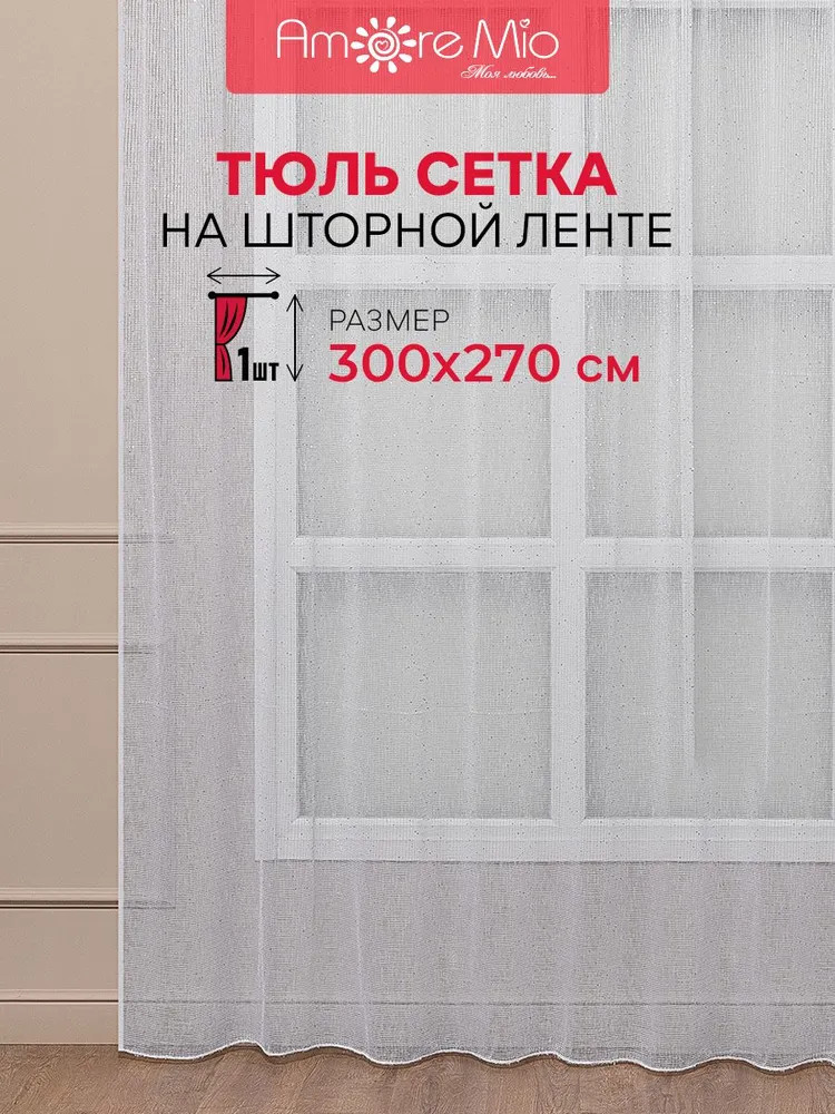 Данная модель тюля торговой марки Amore Mio выполнена из некрупной сетки. Шторы прекрасно дополнят интерьер как гостиной, так и спальни, кухни или детской комнаты, добавят Вашему интерьеру уюта и романтичности. Тюль выглядит легким и воздушным. Отлично стирается, гладится и практически не выцветает на солнце. Прекрасное соотношение цены и качества.