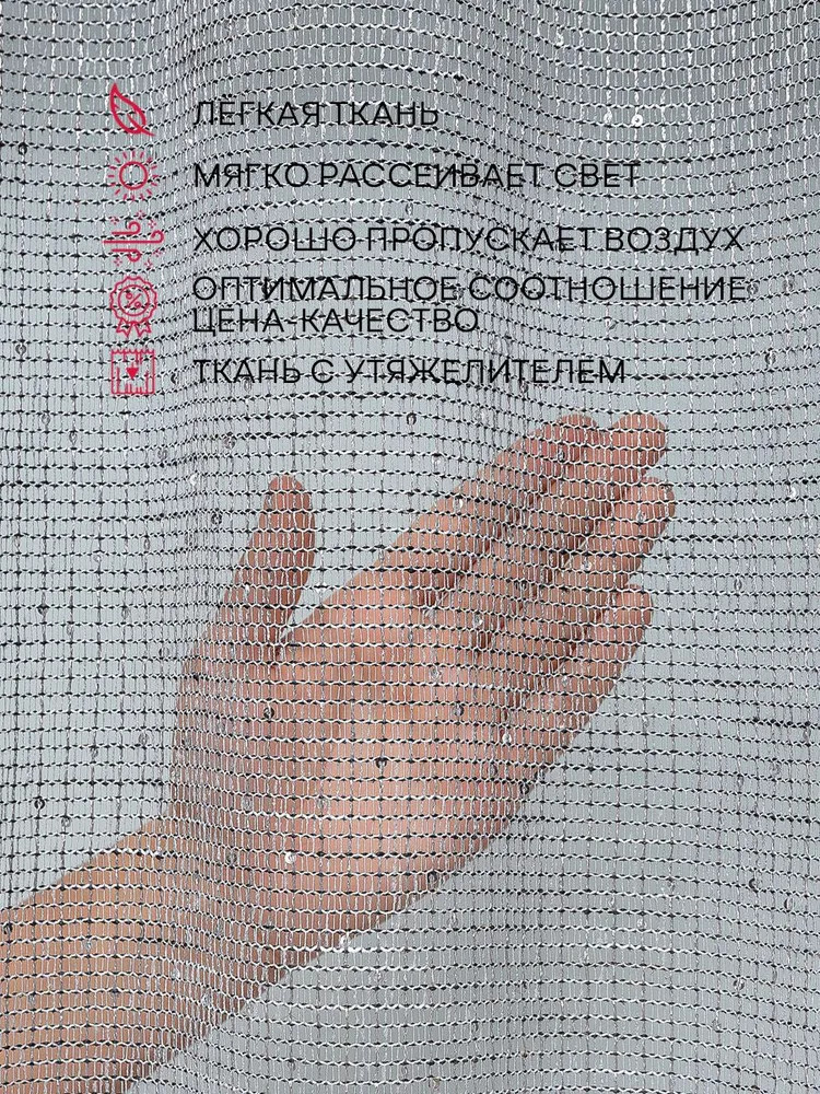 Рекомендации по уходу: машинная стирка на деликатном режиме при 30 градусах с использованием жидкого моющего средства без отбеливающих компонентов, отжим на деликатном режиме. Изделие на шторной ленте и готово к использованию.