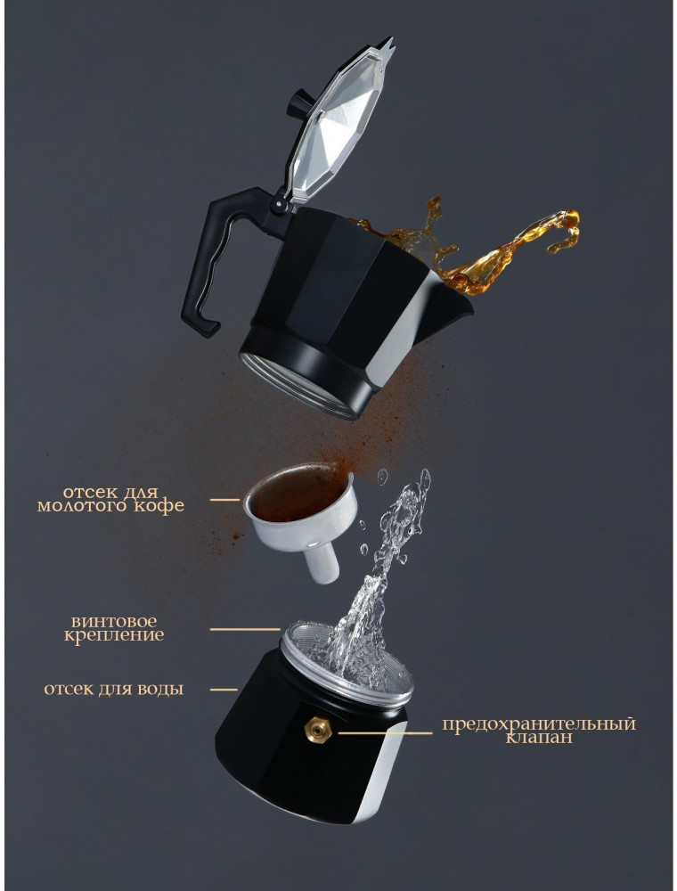 | Доляна Кофеварка гейзерная «Alum black»