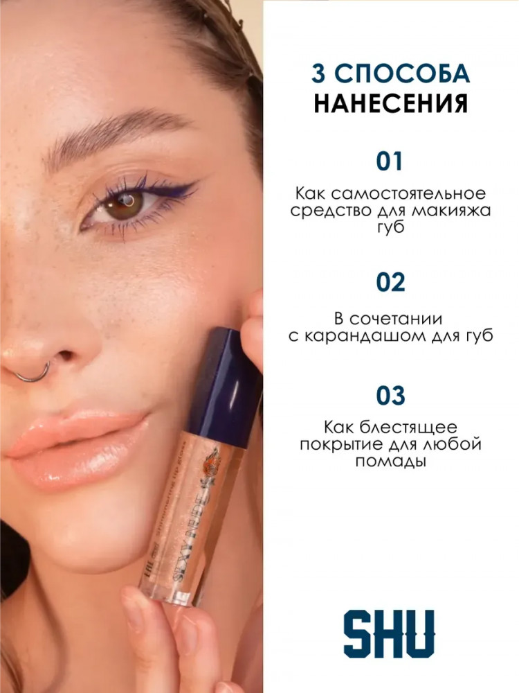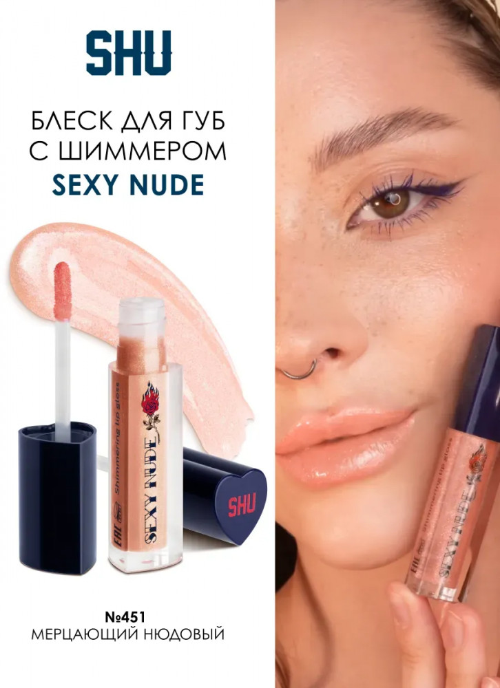 SHU Блеск для губ мерцающий «Sexy Nude», тон 451 мерцающий нюдовый