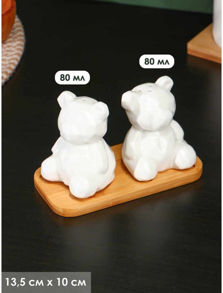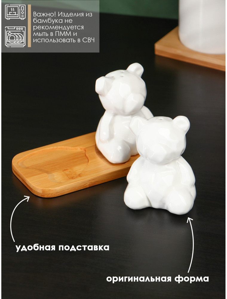 💳 Оплатить за товар можно при получении 🇰🇿 Есть бесплатная доставка по Казахстану 🎁 Копите бонусы с каждой покупки Набор для специй BellaTenero «Медведи» изготовлен из качественного фарфора. Кухонные изделия из фарфора отличаются прочностью и надёжностью, устойчивы к появлению царапин и резким перепадам температур. Благодаря оригинальному дизайну и причудливым формам набор отлично впишется в интерьер вашей кухни и станет настоящей изюминкой при сервировке. Набор дополняет устойчивая деревянная подставка. |