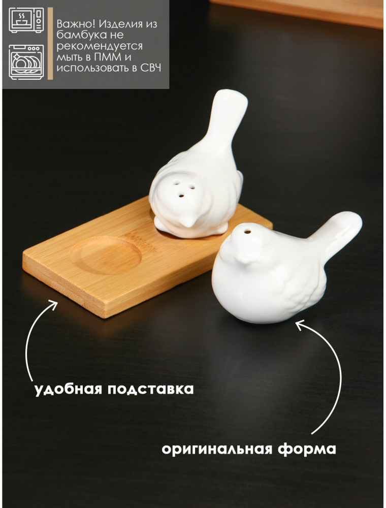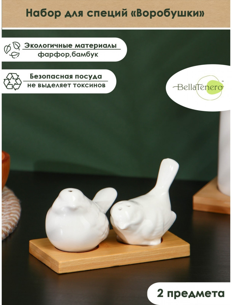 BellaTenero Набор для специй на подставке «Воробушки»В данный момент этот товар отсутствует в продаже. Возможно, у нас найдется аналогичный или похожий товар здесь. Набор для специй BellaTenero «Воробушки» изготовлен из качественного фарфора. Кухонные изделия из фарфора отличаются прочностью и надёжностью, устойчивы к появлению царапин и резким перепадам температур. Благодаря оригинальному дизайну и причудливым формам набор отлично впишется в интерьер вашей кухни и станет настоящей изюминкой при сервировке. Набор дополняет устойчивая деревянная подставка. |