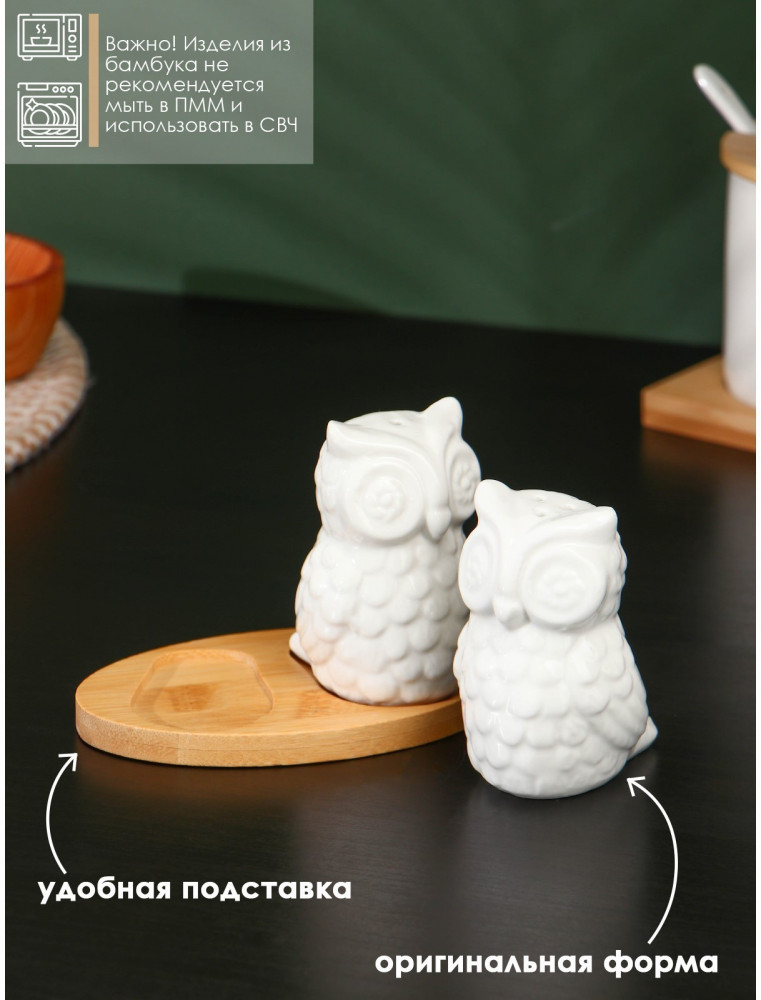 💳 Оплатить за товар можно при получении 🇰🇿 Есть бесплатная доставка по Казахстану 🎁 Копите бонусы с каждой покупки Набор для специй BellaTenero «Совы» изготовлен из качественного фарфора. Кухонные изделия из фарфора отличаются прочностью и надёжностью, устойчивы к появлению царапин и резким перепадам температур. Благодаря оригинальному дизайну и причудливым формам набор отлично впишется в интерьер вашей кухни и станет настоящей изюминкой при сервировке. Набор дополняет устойчивая деревянная подставка. |