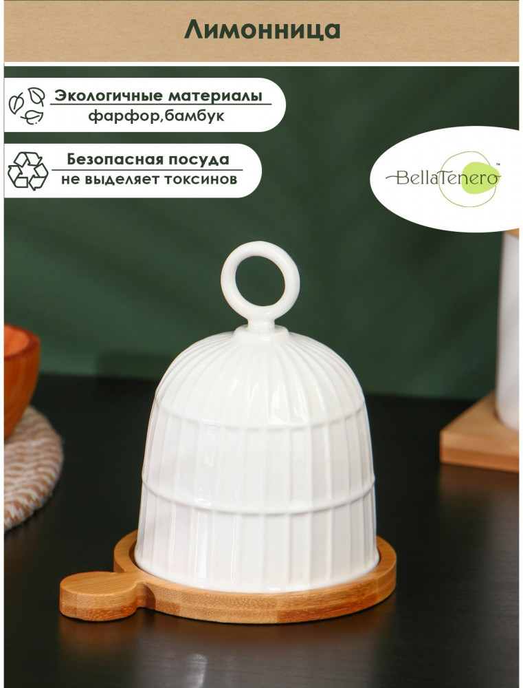 💳 Оплатить за товар можно при получении 🇰🇿 Есть бесплатная доставка по Казахстану 🎁 Копите бонусы с каждой покупки Лимонница BellaTenero предназначена для хранения лимонов, сыра или других пищевых продуктов. Эргономичная форма обеспечивает удобство в использовании, защищает продукты от посторонних запахов и засыхания. Ёмкость для хранения лимона оригинальной формы украсит любое застолье, внеся разнообразие и изюминку. Она станет незаменимым помощником в сервировке стола. Ёмкость изготовлена из качественного фарфора и бамбука, устойчива к механическим повреждениям. |