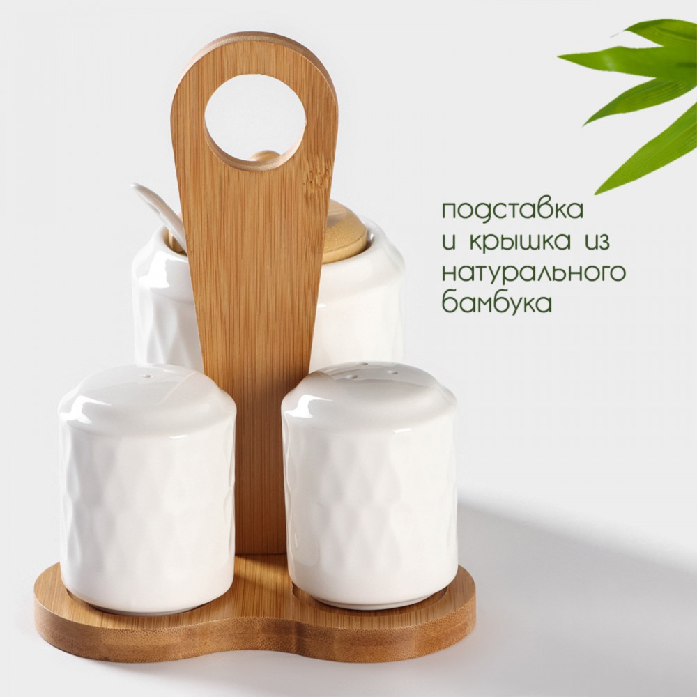 💳 Оплатить за товар можно при получении 🇰🇿 Есть бесплатная доставка по Казахстану от 1 дня 🎁 Копите бонусы с каждой покупки Набор для специй «BellaTenero» «Герда» изготовлен из качественного фарфора. Кухонные изделия из фарфора отличаются прочностью и надёжностью, устойчивы к появлению царапин и резким перепадам температур. Благодаря классическому дизайну набор легко впишется в любой интерьер кухни, а также прекрасно подойдёт в качестве подарка. |