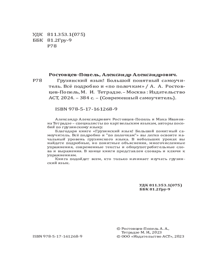 Грузинский язык! Большой понятный самоучитель. Всё подробно и «по полочкам»Александр Александрович Ростовцев-Попель, Мака Ваноевна Тетрадзе -20% +88