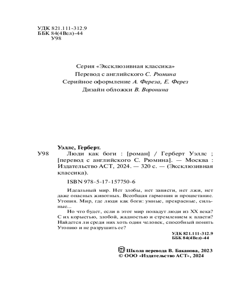 💳 Оплатить за товар можно при получении 🇰🇿 Есть бесплатная доставка по Казахстану от 1 дня 🎁 Копите бонусы с каждой покупки Серия: Эксклюзивная классика Идеальный мир. Нет злобы, нет зависти, нет лжи, нет даже опасных животных. Всеобщая гармония и процветание. Утопия. Мир, где люди как боги: умные, прекрасные, сильные... Но что будет, если в этот мир попадут люди из ХХ века? С их корыстью, злобой, жадностью и стремлением к власти? Найдется ли среди них хоть один человек, способный понять Утопию и не разрушить ее? |