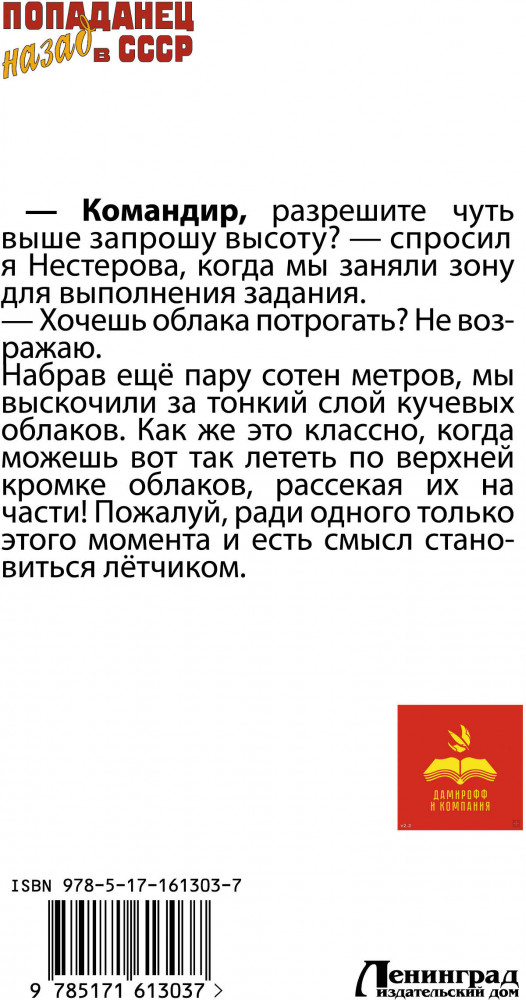 💳 Оплатить за товар можно при получении 🇰🇿 Есть бесплатная доставка по Казахстану от 1 дня 🎁 Копите бонусы с каждой покупки Серия: Попаданец. Назад в СССР Чёртова война забрала мою жизнь. Однако старушка-судьба, не желая разбрасываться такими боевыми кадрами, как я, закинула сознание боевого офицера в шкуру тщедушного подростка. Вот это поворот! Теперь моя давняя мечта — стать лётчиком — может наконец сбыться! Поступить в училище? Легко! Окончить? Без проблем! И всё бы ничего, да только год на дворе — 1976-й. Советский Союз во всём его «скромном» блеске. |